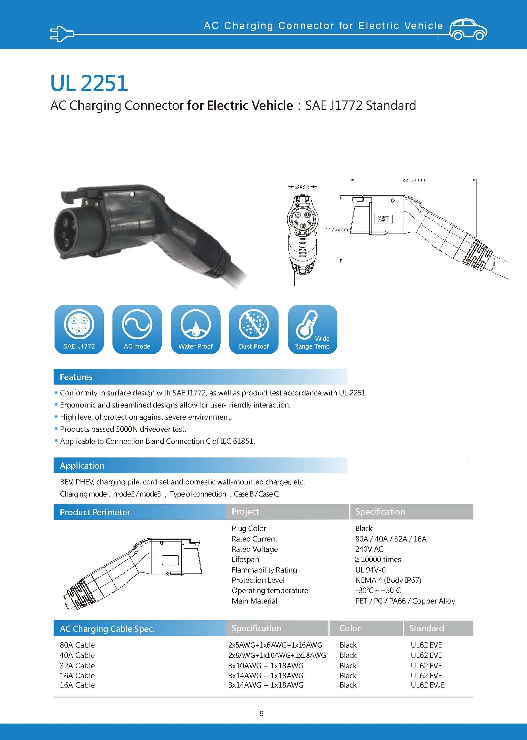 Meet SAE J1772 2009 (Type 1 EV Connector) North American standardEV Charger Cable lenght: 5m, 7.62m or customized