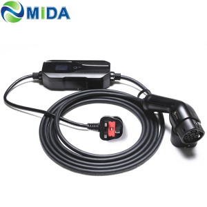 中国供应商 6A 8A 10A 2 级电动汽车充电器类型 1 转英国 3 针便携式电动汽车充电器